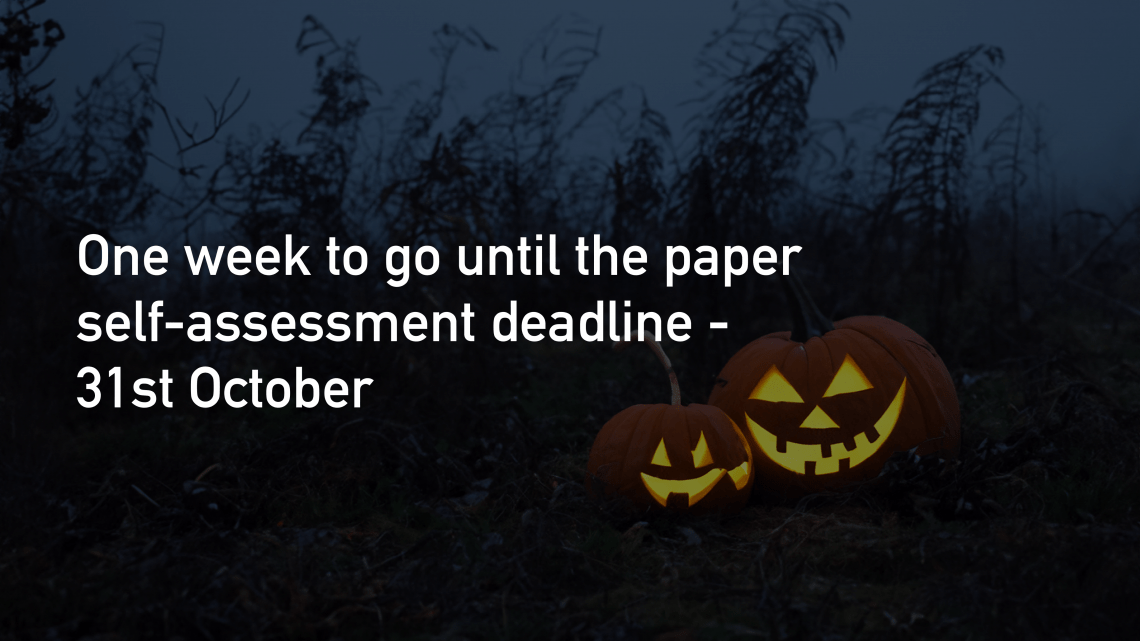 The deadline for individuals choosing to complete their self-assessment via post means you have until the 31st October (aka Halloween) for HMRC to receive all the necessary paperwork.